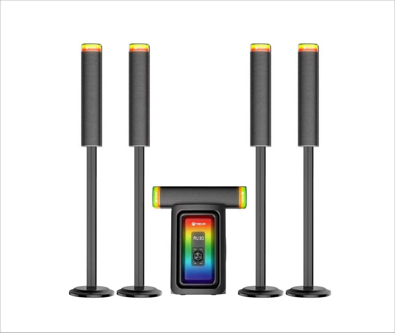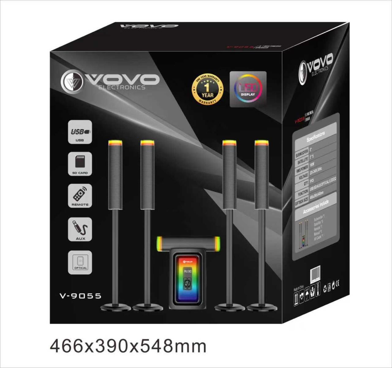 he VOVO V-9055 5.1 Channel Multimedia Speaker System is designed to deliver powerful surround sound with a modern and stylish look, making it perfect for home entertainment, gaming, and multimedia setups.